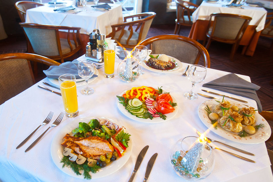 Меню ресторана олицетворяет его философию - сохранение кулинарных традиций, использование натуральных продуктов и эко-дружественность. В ресторане наши гости могут насладиться напитками из свежих ягод, различными закусками, включая маринованные грибы, свежие овощи, блинчики, изысканные рыбные и мясные блюда. Бар ресторана предлагает широкий ассортимент напитков на любой вкус.